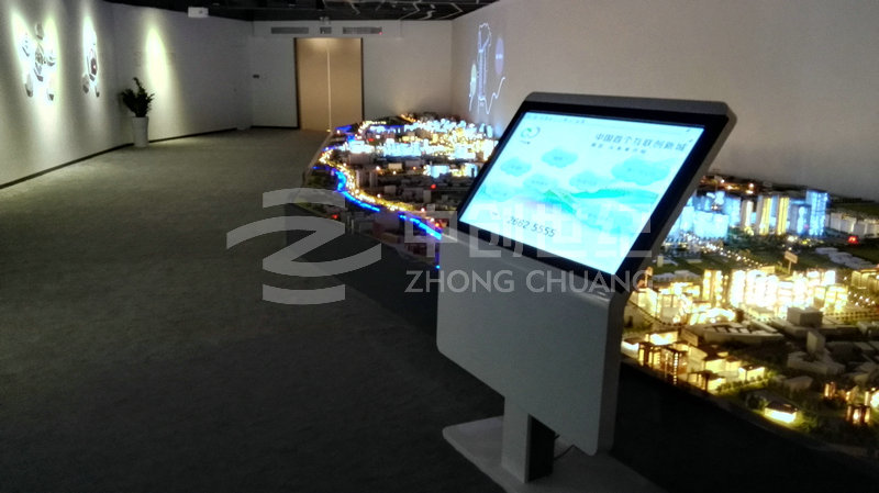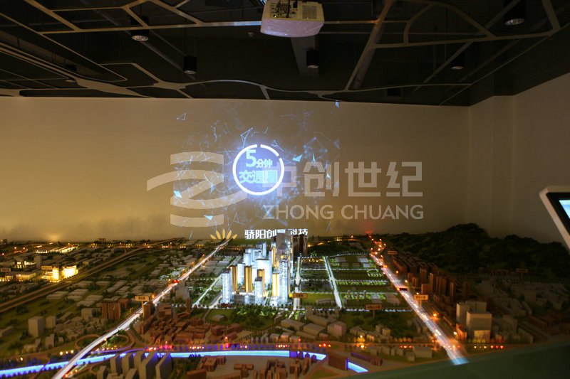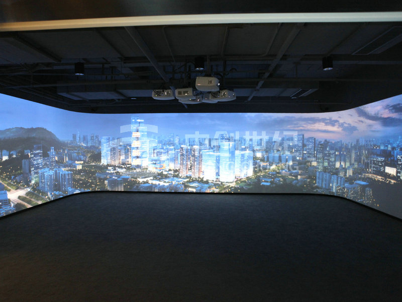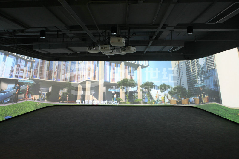 整個系統涉及擴聲音響、投影顯示、液晶拼接、高清信號傳輸以及集中控制等系統組成。其中影院區采用3臺高清投影機融合滿足143度弧型顯示;沙盤區采用1臺高清投影機與1臺360度高清投影機拼接滿足L型幕的顯示;體驗區采用6臺高清投影機整合滿足三面環幕顯示;品牌接待區采用3*3 46寸LED超窄邊液晶拼接大屏。