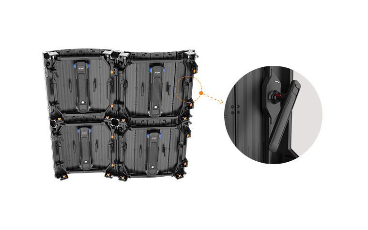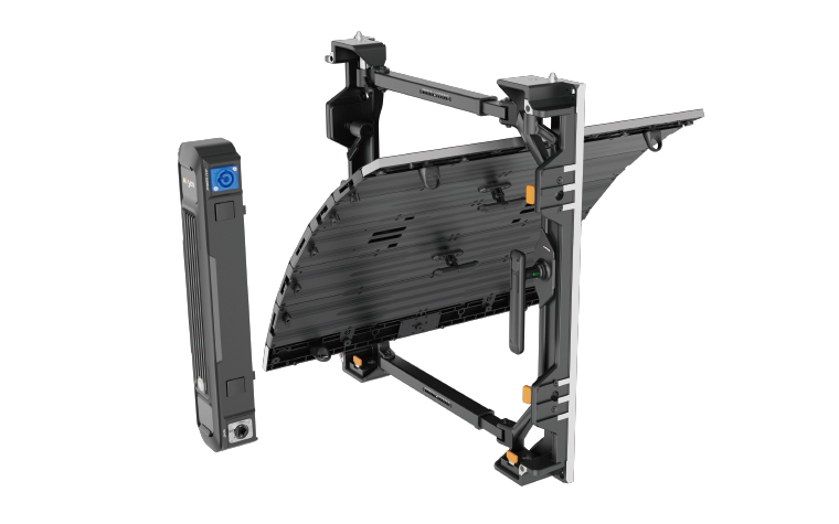 ⑥ 吊裝堆裝皆可,曲線依然:FL系列設(shè)計(jì)了小巧靈活的吊裝塊配件,以及前端帶有獨(dú)立連接片的專用配套支撐架配件,完美適配各種造型的弧形屏體安裝需求。